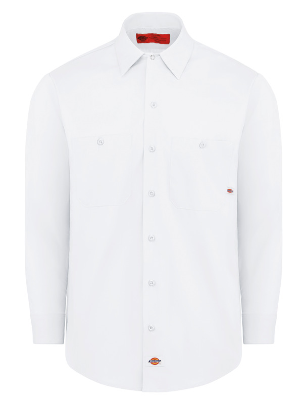 Dickies' Long Sleeve Industrial Work Shirt is a rugged choice that always looks neat and holds up to industrial laundering. It's comfortable, presents a sharp appearance, and is tough as nails. Easy care, permanent press polyester/cotton poplin resists wrinkling and fading. The perfect uniform shirt made to withstand the rigors of any job and industrial laundering. Available in a variety of colors in extended sizing.